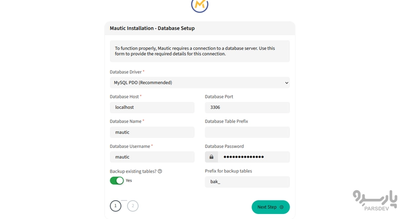 مرحله ۵: نصب Mautic را از طریق پنل به پایان برسانید