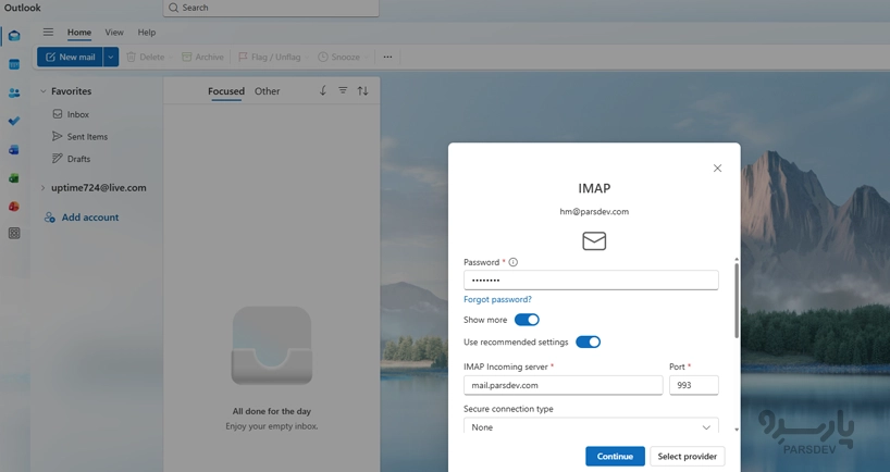 با وارد کردن همان اطلاعات سرور (IMAP/SMTP) میتوانید ایمیلها را در گوشی نیز همگام کنید.