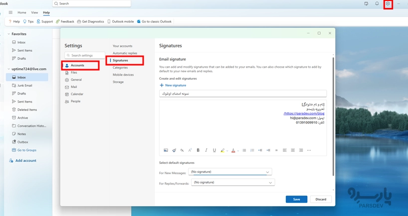 تنظیم امضا (Signature) در Outlook