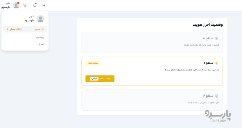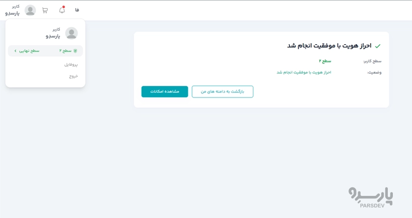 در صورت موفق بودن احراز هویت، شناسه شما به سطح ۲ ارتقا مییابد